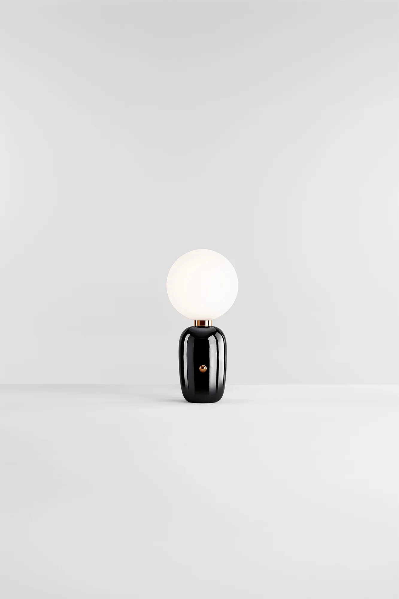 Designed by Jaime Hayon, the Aballs M table lamp collection brings the iconic Aballs aesthetic to intimate scales. Each elegant capsule-shaped ceramic body supports a spherical opal glass diffuser that emits a soft, ambient glow perfect for bedside tables, desks, and console surfaces. Available in two sizes, these sculptural table lamps create sophisticated focal points in residential and hospitality settings. The handcrafted ceramic paired with hand-blown opal glass showcases traditional Barcelona artisanship, while the contemporary form adds refined elegance to any interior. Available in white, black, or golden finishes, each fixture is meticulously made by skilled artisans in Barcelona.