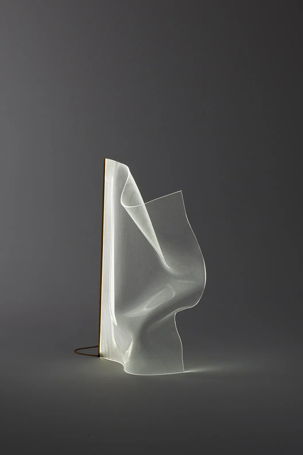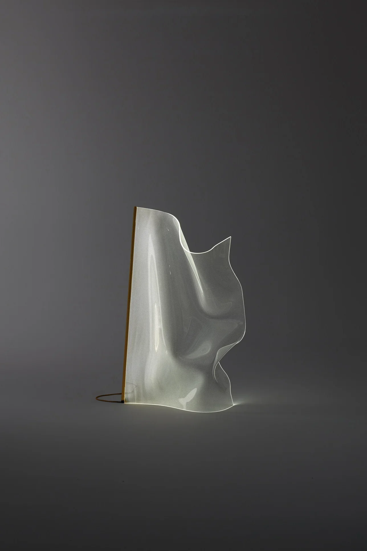 Designed by Partisans, the Gweilo Qin floor lamp collection embodies the spectral beauty of light transformed into sculptural form. Each lamp is hand-sculpted from optical-grade acrylic sheets through an innovative thermoforming process, creating ethereal, ghostly forms that pleat and curve with organic grace. The transparent acrylic structure appears almost liquid in form, with the extruded aluminum profile housing integrated LED strips that bring the sculpture to life with a soft, atmospheric glow. Available in two sizes with golden or silver anodised finishes, these floor lamps function as illuminated art pieces that gracefully delineate space. Perfect for contemporary interiors, artist lofts, and hospitality environments, the Gweilo Qin lamps create an otherworldly ambiance. Each piece is individually hand-sculpted in Spain, ensuring no two are exactly alike.