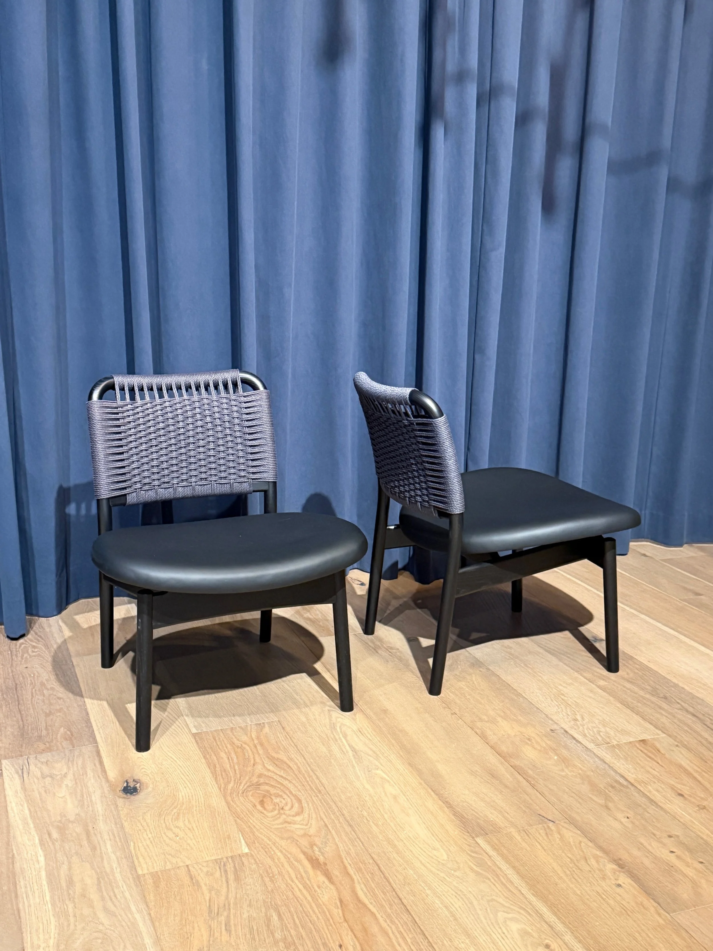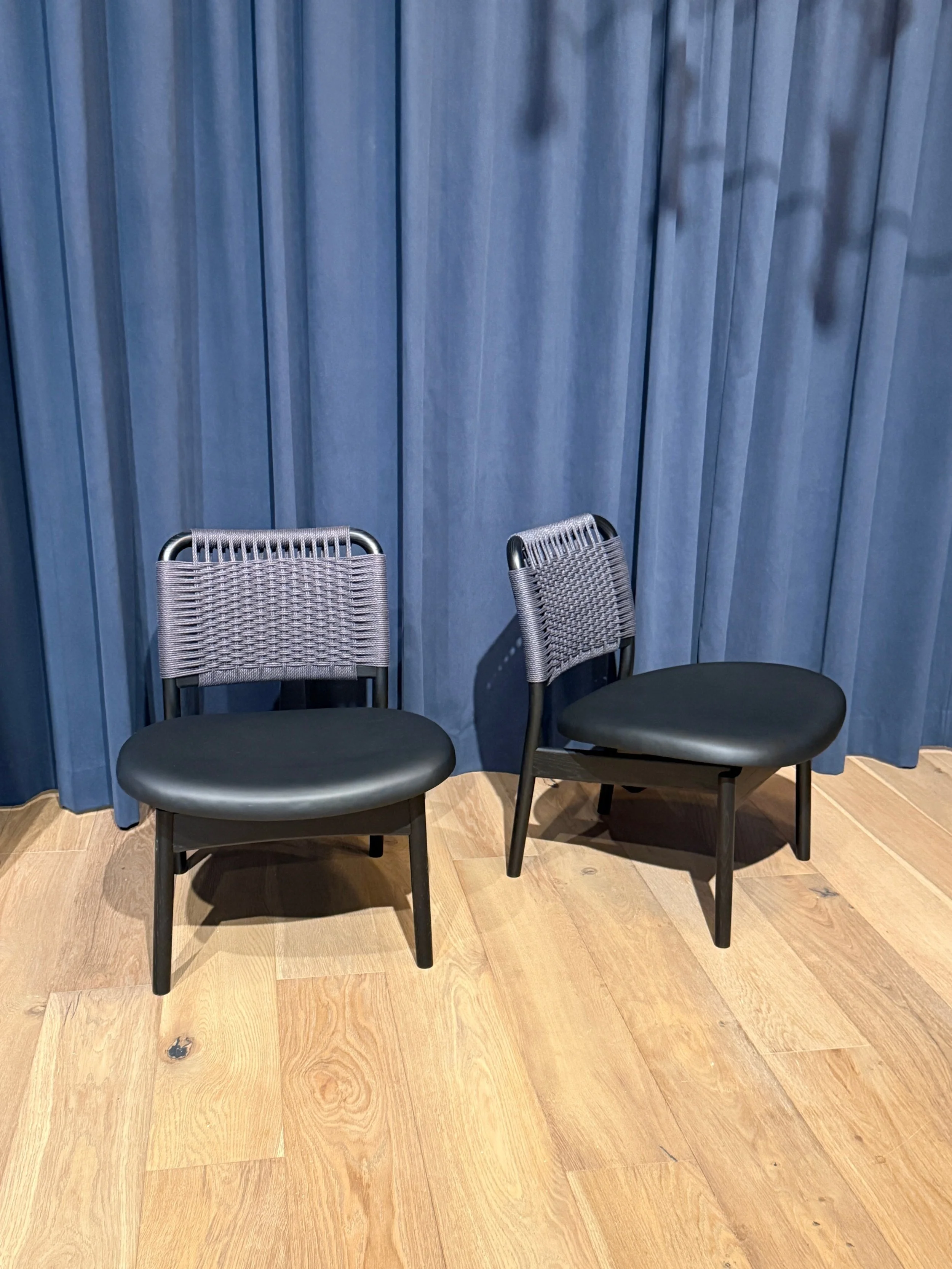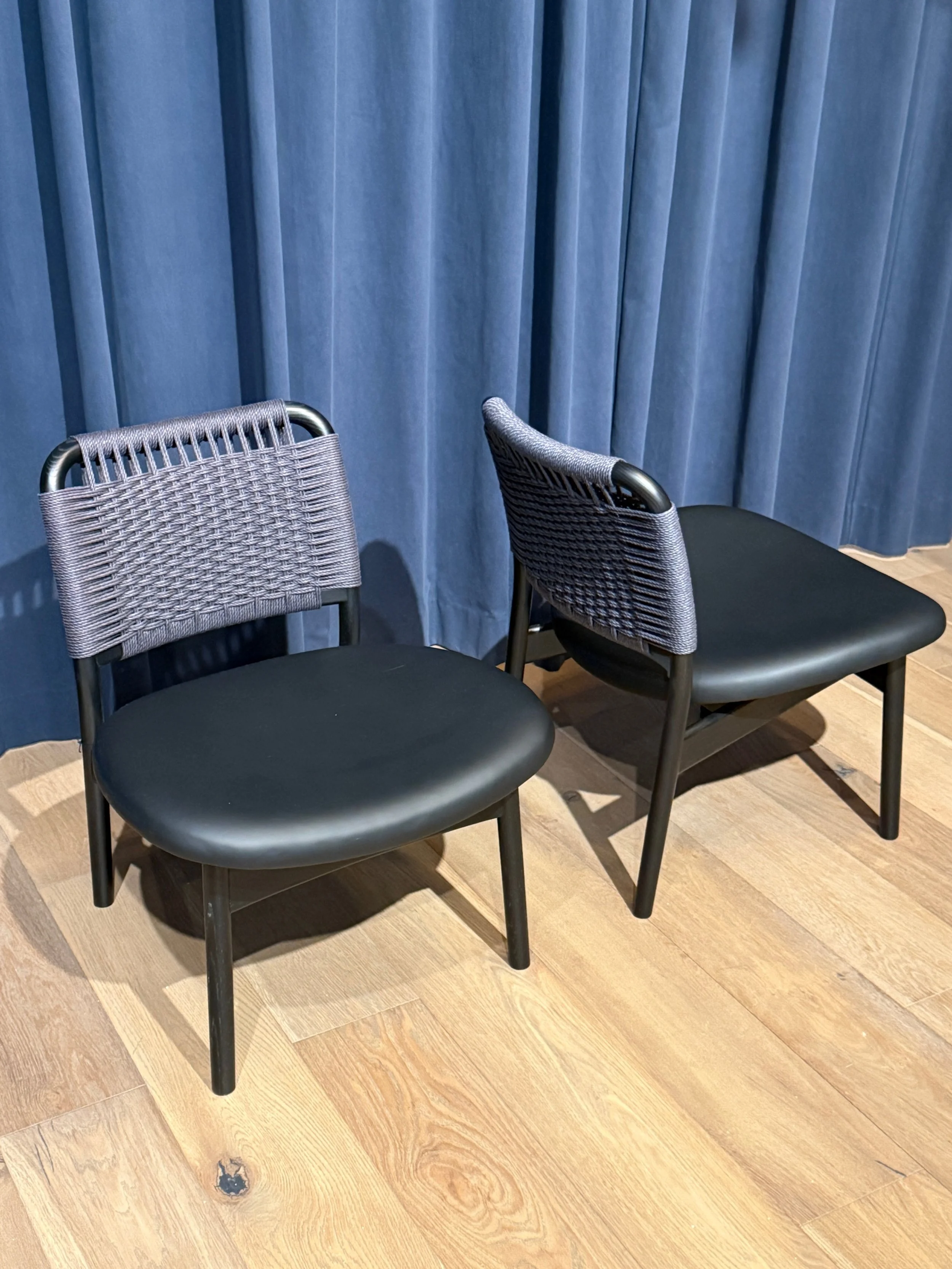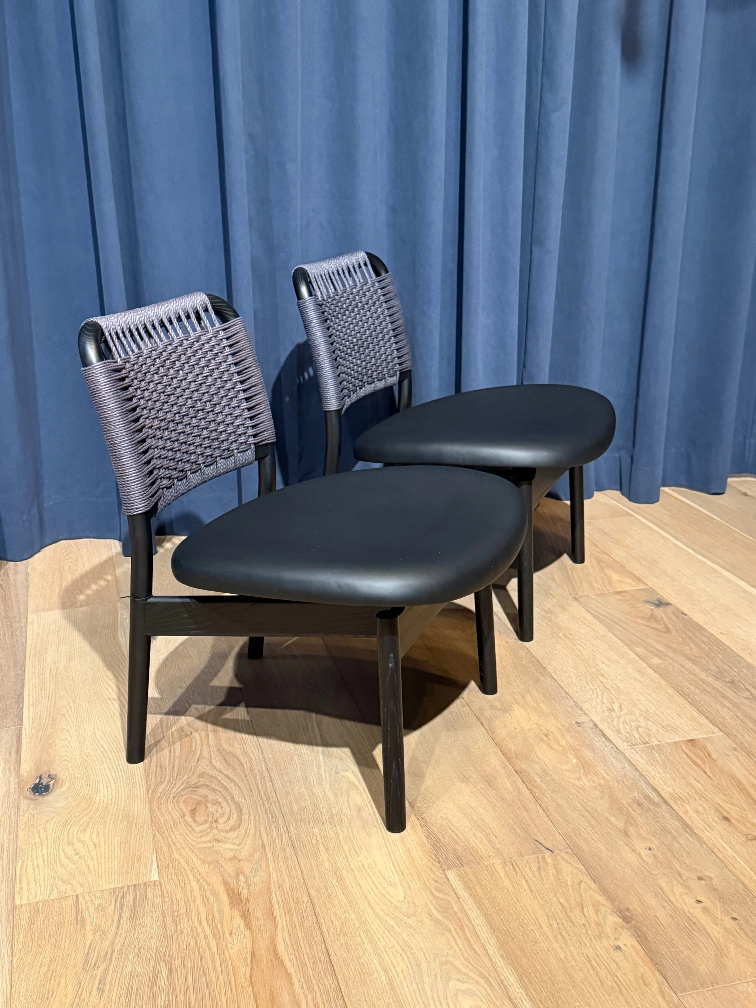 Materials: Solid ash with paperboard back and leather upholstered seat