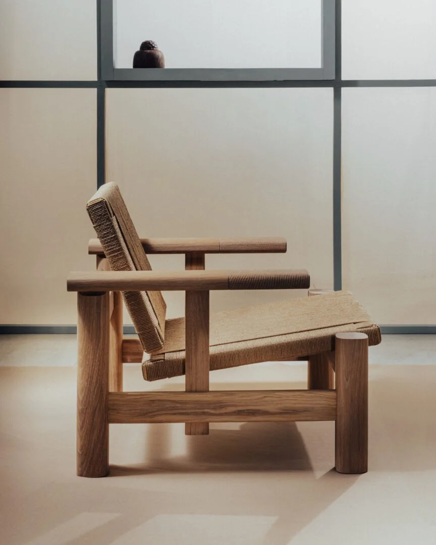 The Kira lounge chair by Jean-Marie Massaud is a study in the dialogue between structure and surface, wood and weave. The solid wood frame — rounded legs, generous proportions, calm architectural presence — is paired with a seat and backrest woven from Danish paper cord, a traditional material prized for its durability, flexibility, and quiet tactility. The armrests are hand-carved with Zanat's signature texture, a detail that echoes the linear rhythm of the weave and gives the hands something to notice. The result is a chair that earns its place in a room not through statement but through the accumulated rightness of its materials and the care taken with each of them. Also available with an upholstered seat and backrest for a softer expression.