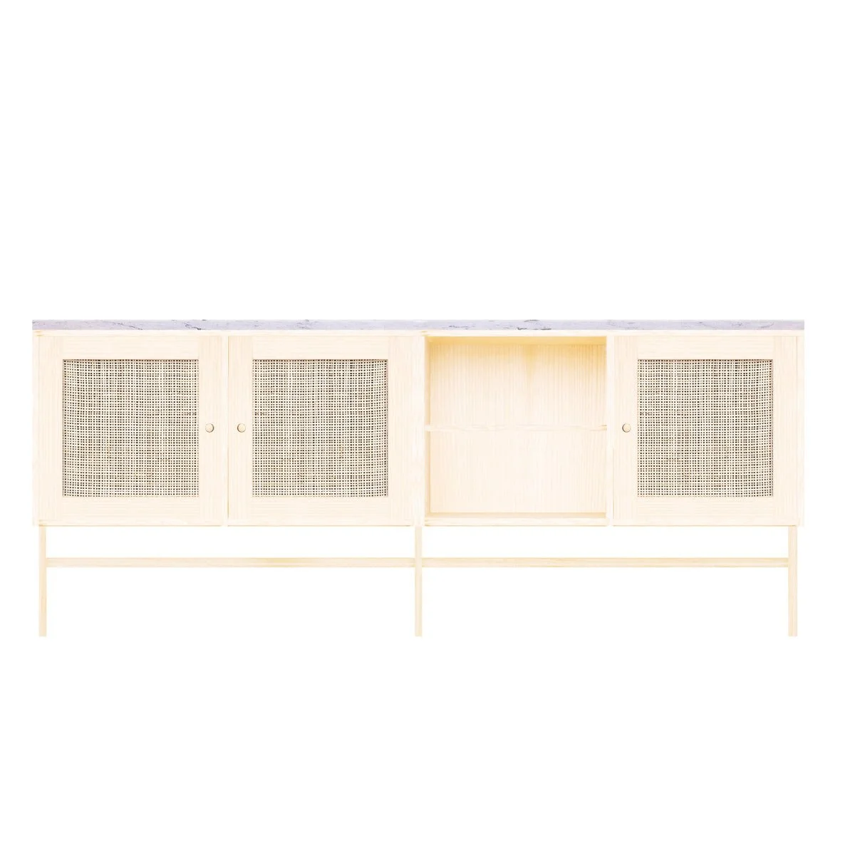 Options: Available in Ash, Oak, Walnut, Mahogany, or Bamboo in matte lacquer or clear oil. The Console Small is available in two depths complete with Rattan doors to discreetly hide the contents inside.