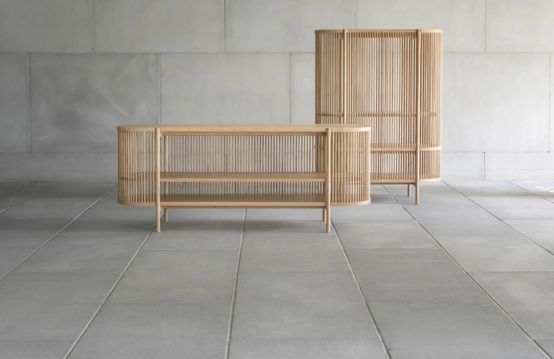The Poiat Bastone collection was designed by the master cabinet maker and young designer of the year 2018, Antrei Hartikainen. The collection consist of a cabinet and a sideboard. The partly open structure enables the filtering of light and reflections of shades.