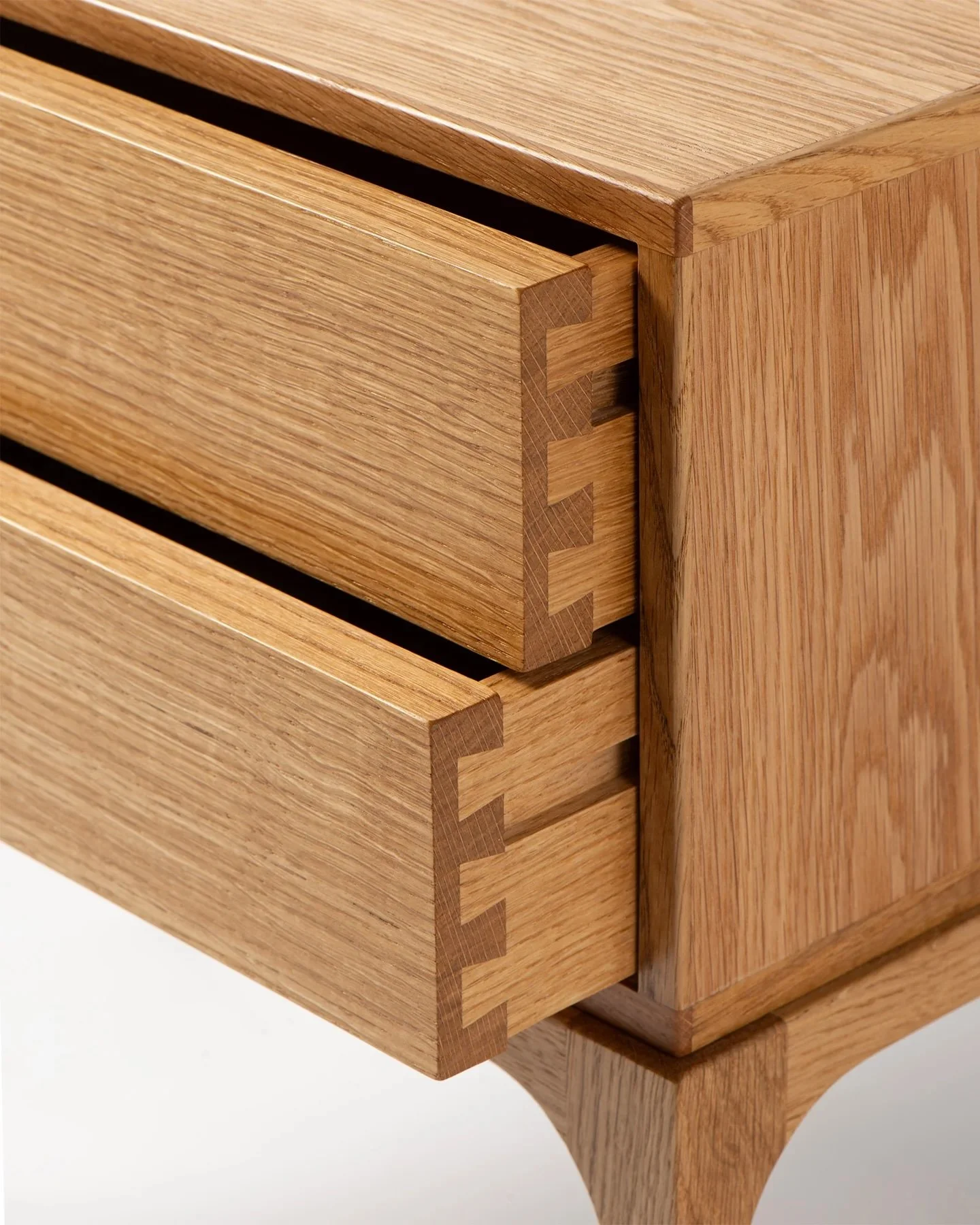 Options: Solid oak or walnut wood frame with an oiled finish. One or two drawers.