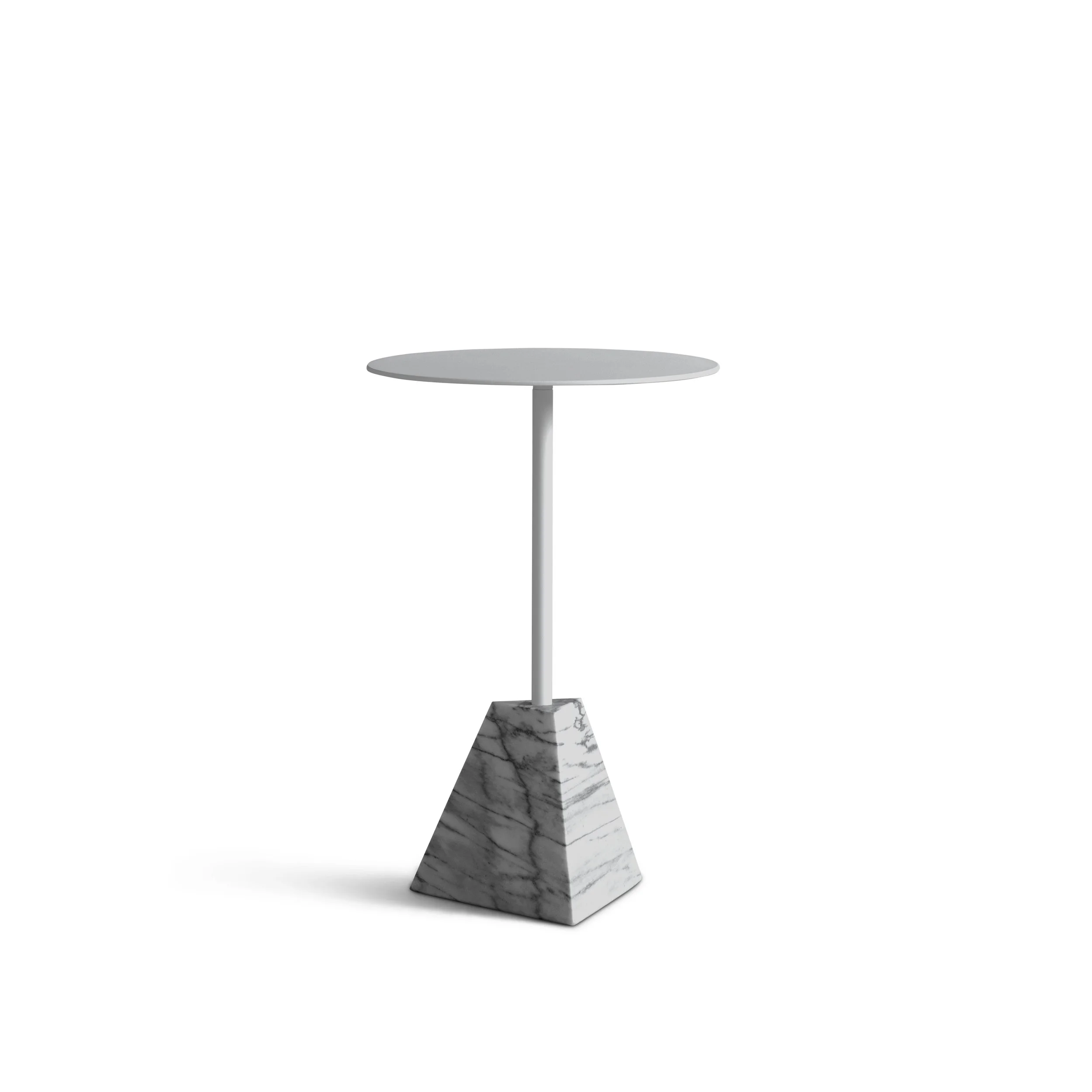 Materials: Solid marble base/top in powder coat aluminium. Suitable for outdoors