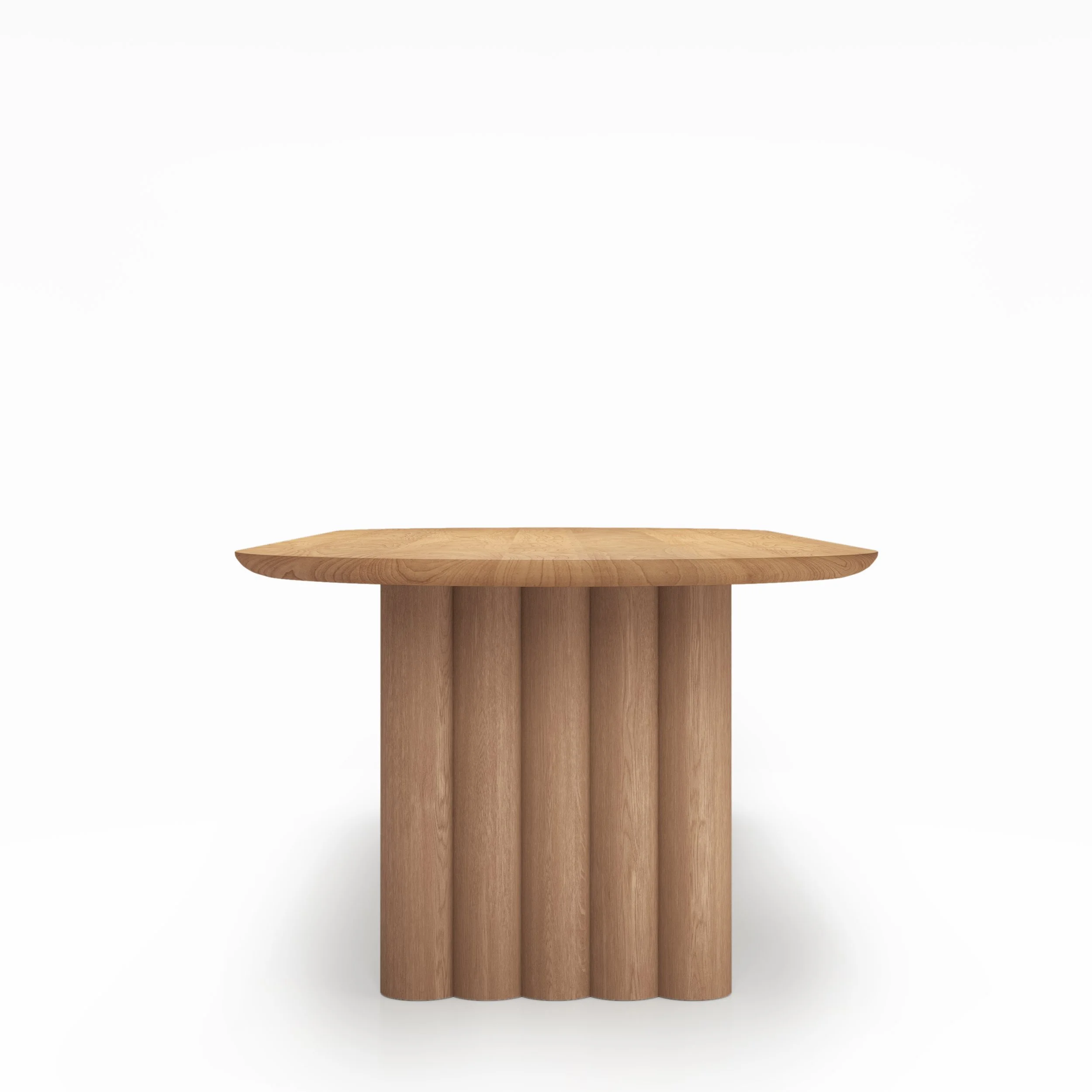 The PLUSH TABLE fully lives up to its name with the soft shapes, which, together with the sturdy wood and the elegant tabletop form an impressive unit.