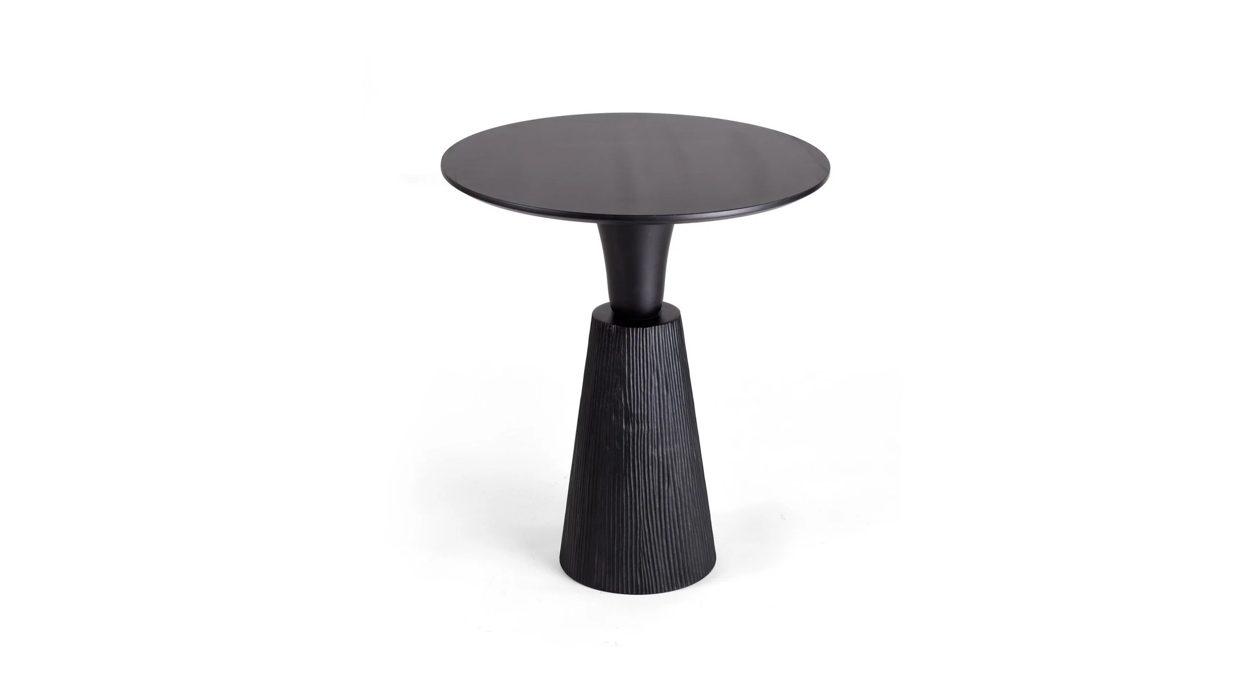 Pointe table is a design statement of ballet-like elegance expressed in a graceful, multifunctional object made in solid wood. En pointe ballet dancer supports their entire body with tips of their feet creating a vision of balance, precision and beauty. This exquisitely executed round table can be used as a sculptural centerpiece in a hall, small bistro/dining/coffee table, or a side table. The table’s base resembles a tree-trunk due to both its shape and the tree bark hand-carved pattern on its surface, which takes us back to product’s origin. The neck of the table sits in contrast to the base, with its smooth surface and elegantly curved shape of a trumpet bell.