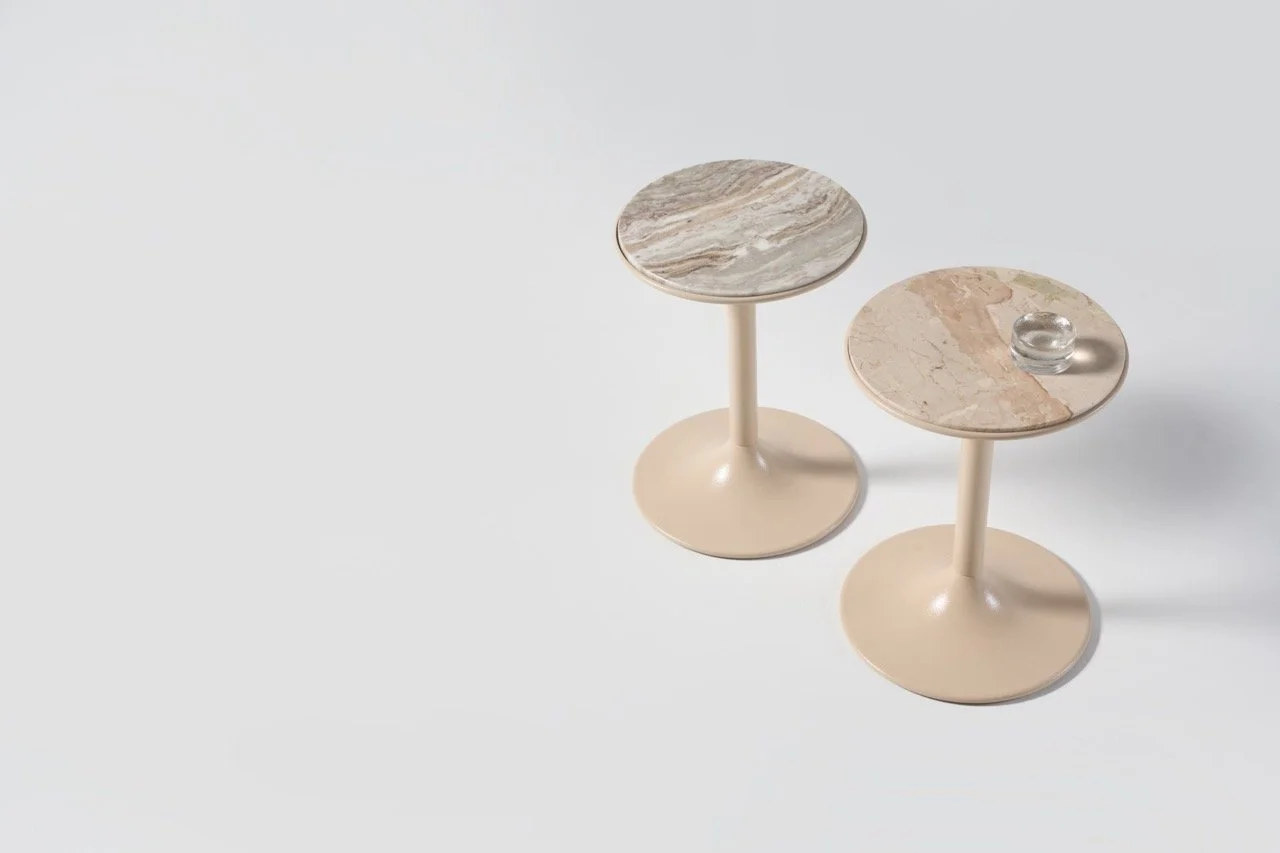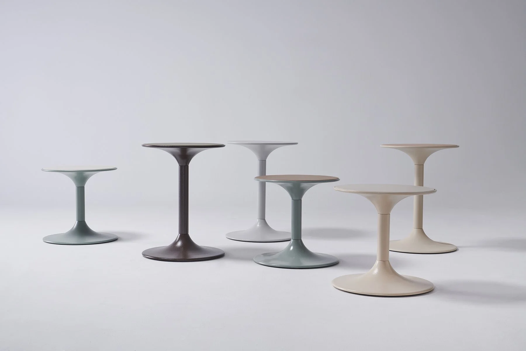 Made in Australia, the Porter side table is a lightweight spun metal side table with a ripple powder coat finish and leather inlay top.